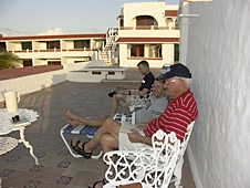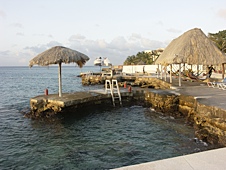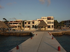 We continued to the Punta Sur nature preserve where we stopped and took some pictures. Returning along the eastern side of the island the road was right along the water, so it made for a much more picturesque drive. Back at the resort we relaxed for a while, and then met at the bar for cocktails. The resort has internet access, but their base station was having problems. Fortunately Rick watched the manager walk over and reset it; from then on when it wasn't working we sent Rick over and he reset it himself. We had decided to eat at a restaurant in town called Acuario, so we headed over there. The restaurant had a large outdoor seating area and we had dinner looking out over the ocean, watching the cruise ships go by.