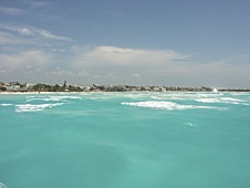 We decided that was a great plan B, so we took a taxi to the dock and caught a ferry 20 minutes later. After a 45 minute ferry ride we found a driver at the dock who took us to Tulum, a 30 minute drive. Once there we had some lunch and then took the tractor pulled tram to the ruin site. It was right on the water, a very beautiful setting. The weather was sunny and hot, the breeze by the ocean was nice. We stayed about an hour, then made our way back to our driver. Back in Playa Del Carmen we only had 15 minutes before the next ferry (they run on the hour). We ended up back in Cozumel at about 3pm.