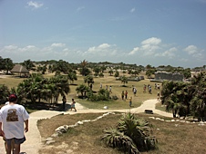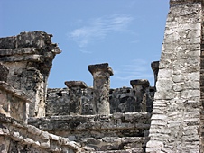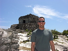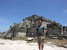In the morning we had breakfast and then caught a cab to the airport for a charter flight to Chichen-itza, the big Mayan ruin site. We met two other couples who were waiting for the flight. They had been there for an hour because they were on 'boat time'; cruises in the area stay on Eastern Standard Time, which they hadn't accounted for. We waited for quite a while, and when one plane showed up for one family, but not for us, Randy made a call to the charter company to see what was up. To his dismay it turned out that he had booked the charter for the day before! Oh no! After a moment of disbelief, Rick stepped in an suggested an alternate plan: take the ferry to Playa Del Carmen, then hire a driver to take us to Tulum, another Mayan ruin site that was smaller, but closer.