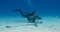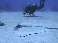 Our two afternoon dives were done at West Sand Spit, which was a very sandy area with lots of stingrays. Before sunset the captain took the chase boat over to a sand bar that was just sticking out of the waves with a few of the passengers.