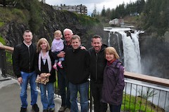On Thursday March 25 we flew up to Seattle for a weekend with Rick's family. Friday morning Rick's parents and Jim, Katie and Ellie headed up with us to Snoqualmie Falls, then over to Newcastle Golf Club for lunch with a view of Seattle in the distance. Friday evening we all had dinner at Cactus in Madison Park, then back to the Four Seasons where we were staying for a dip in the hot tub.